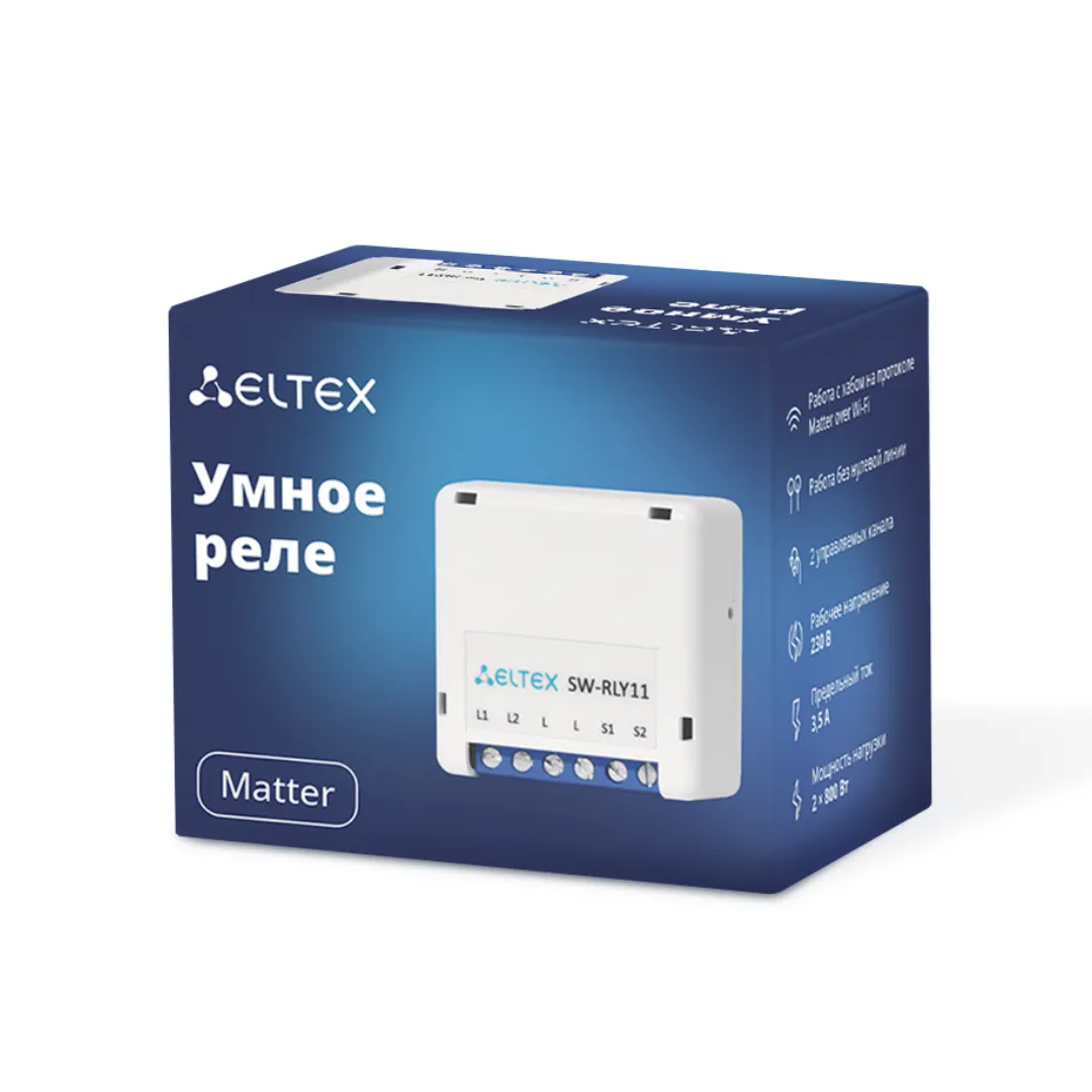 Умное реле Eltex SW-RLY11 помогает автоматизировать основное освещение в квартире, не затевая ремонт. Основное отличие от предыдущих моделей — поддержка универсальной технологии Matter over Wi-Fi. Это позволяет интегрировать реле с популярными экосистемами умного дома. Для подключения понадобится хаб с поддержкой Matter, например SL-10-WBZ или SH-130.