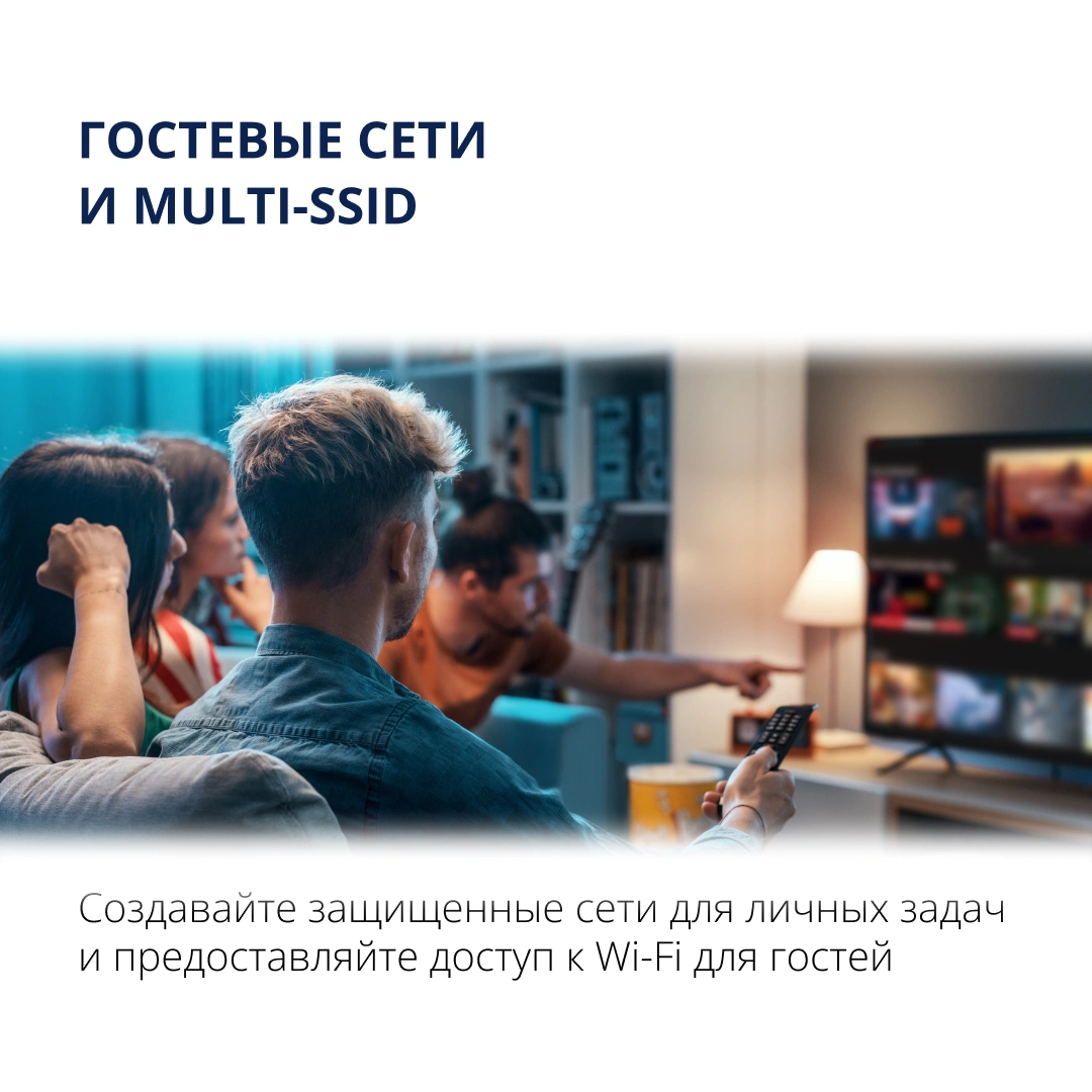 Роутер поддерживает технологию EasyMesh, которая помогает избавиться от «мёртвых зон» в больших квартирах, домах или офисах. Устройства объединяются в единую Wi-Fi-сеть с общим именем и паролем, обеспечивая бесшовный роуминг при перемещении между зонами покрытия.