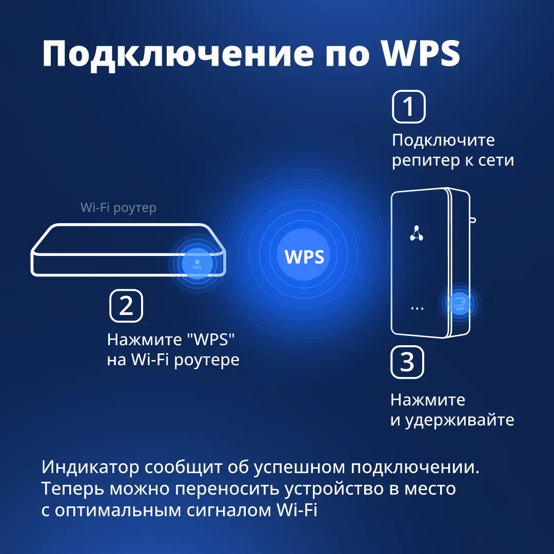 RR-11 легко подключить и использовать. Расположите его между роутером и зоной со слабым Wi-Fi и наслаждайтесь интернетом в любом уголке дома. Соединить репитер с роутером очень просто за несколько секунд с помощью WPS.