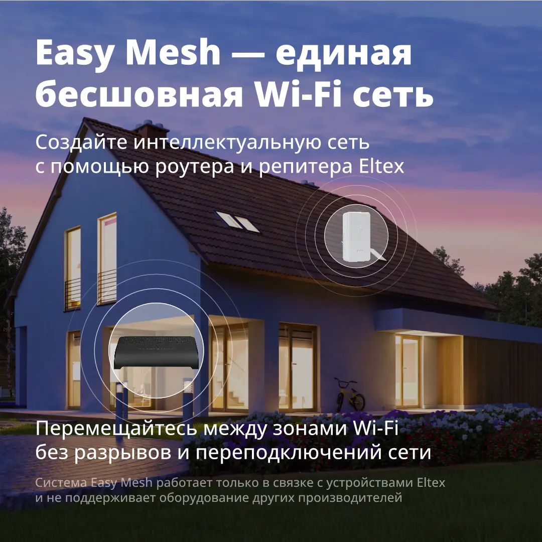 Чтобы раскрыть заложенные возможности EasyMesh, в связке с репитером RR-11 используйте роутер Eltex RG-1440G-Wac или RG-1440G-WZ.