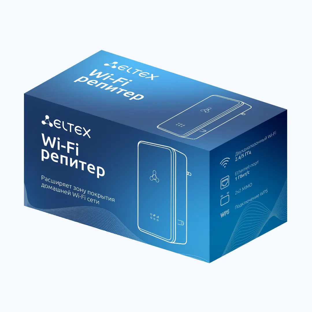Двухдиапазонный Wi-Fi репитер Eltex RR-11 подключит к интернету ваши устройства на высокой скорости – до 300 Мбит/c для диапазона 2,4 ГГц и до 867 Мбит/c для диапазона 5 ГГц.