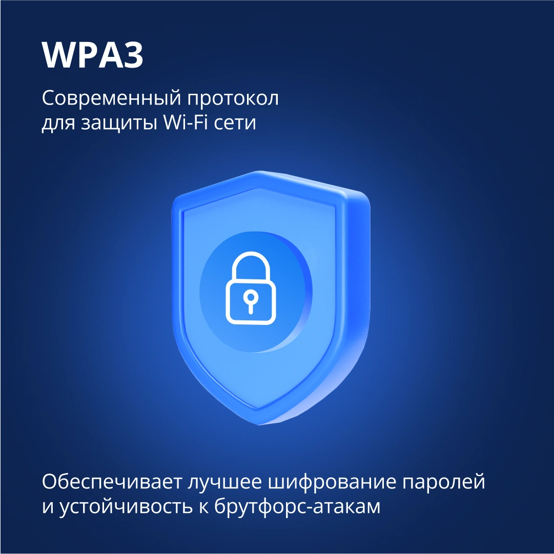 Протокол WPA3, алгоритм шифрования AES128 и другие технологии протокола надёжно защитят вашу беспроводную сеть, а вы посвятите время тому, что нравится – смотрите видео в 4K, играйте в онлайн-игры или общайтесь онлайн безопасно и без ограничений.