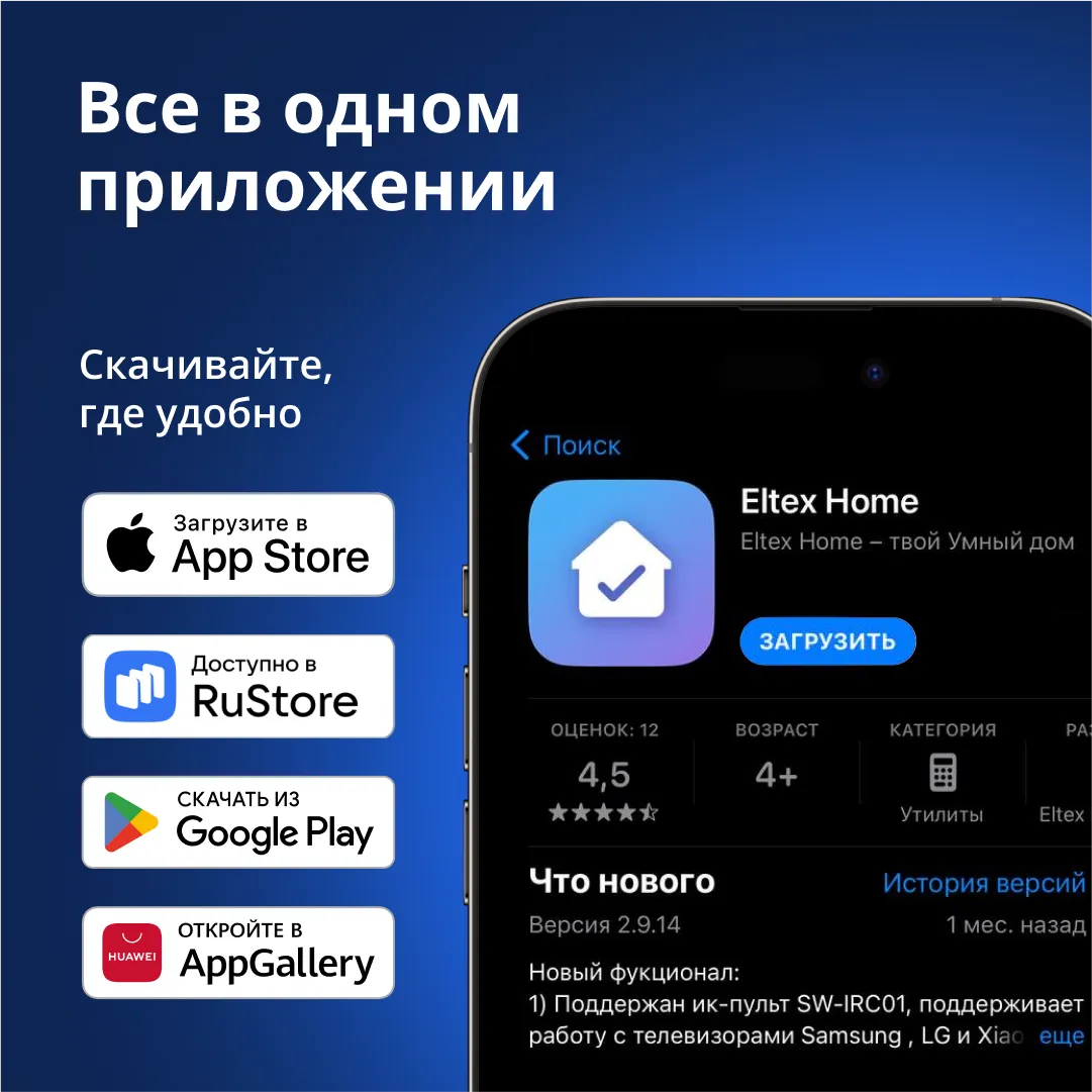 Хаб SH-10-WZ – это центральное звено умного дома. Выполняет роль блока управления Z-Wave устройствами от Eltex, объединяя их в экосистему. Подключайте к хабу до 30 Z-wave устройств. Он передает команды управления и взаимодействует с приложением Eltex Home через интернет. Позволяет использовать датчики Z-Wave с другими смарт-устройствами, например Wi-Fi, в единых пользовательских сценариях. Хаб подключается по Wi-Fi или проводу, если находится вне зоны действия беспроводной сети. Необходим для добавления датчиков Z-Wave от Eltex в умные дома от Яндекса, Сбера и VK. Управляйте ими через приложения «Дом с Алисой», «Салют», «Маруся». Проверяйте статусы их работы с помощью голосовых команд через устройства, в которых живут «Алиса», «Салют» и «Маруся».