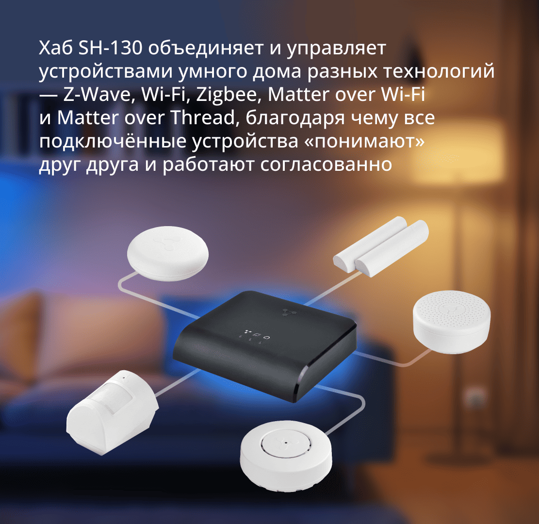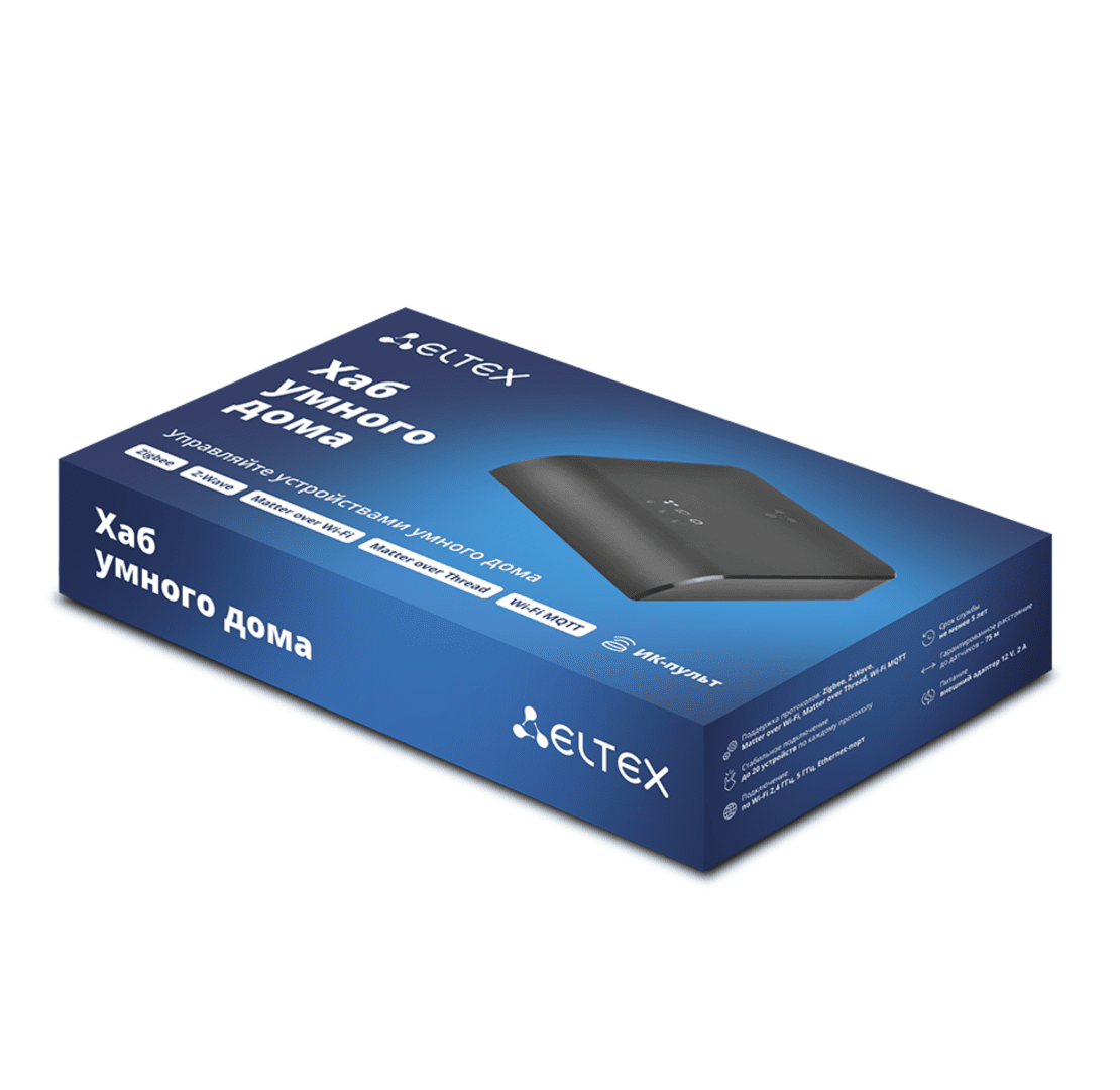 Новый универсальный хаб умного дома с поддержкой Matter over Thread и других популярных технологий: Wi-Fi, Zigbee, Z-Wave, Matter over Wi-Fi, а также встроенным ИК-пультом. С его помощью объединяйте устройства Eltex и сторонних брендов в единую систему и позволяет им работать вместе.