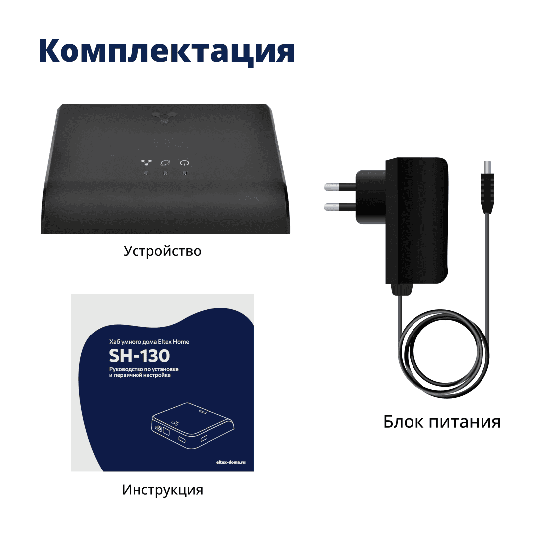 Управление происходит через приложение Eltex Home: добавляйте устройства, создавайте сценарии и следите за всем, что происходит дома. Подключение и настройка интуитивно понятные и не требуют специальных знаний, а в комплекте есть всё необходимое, чтобы устройство работало «прямо из коробки»: адаптер питания, Ethernet-кабель и руководство по настройке.
