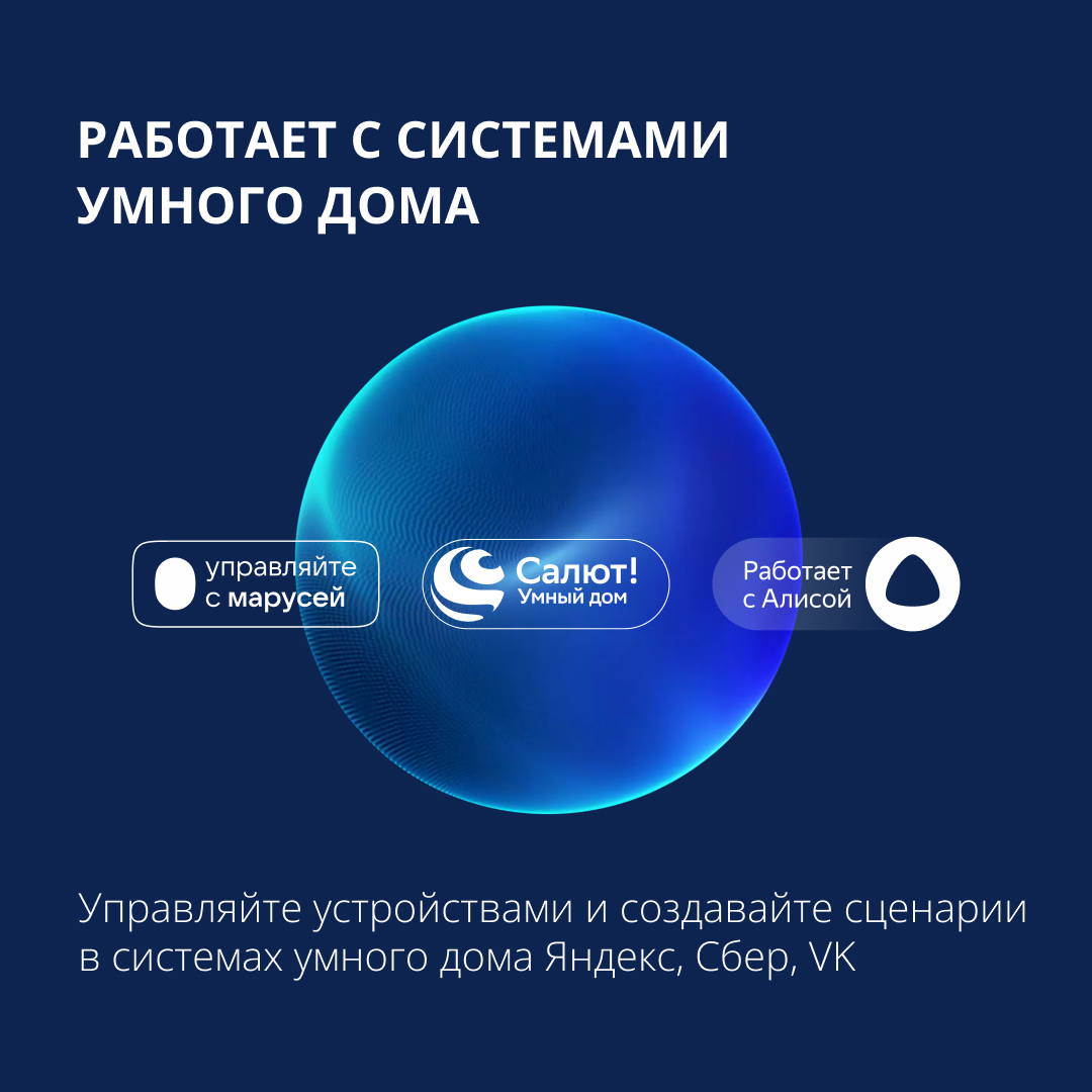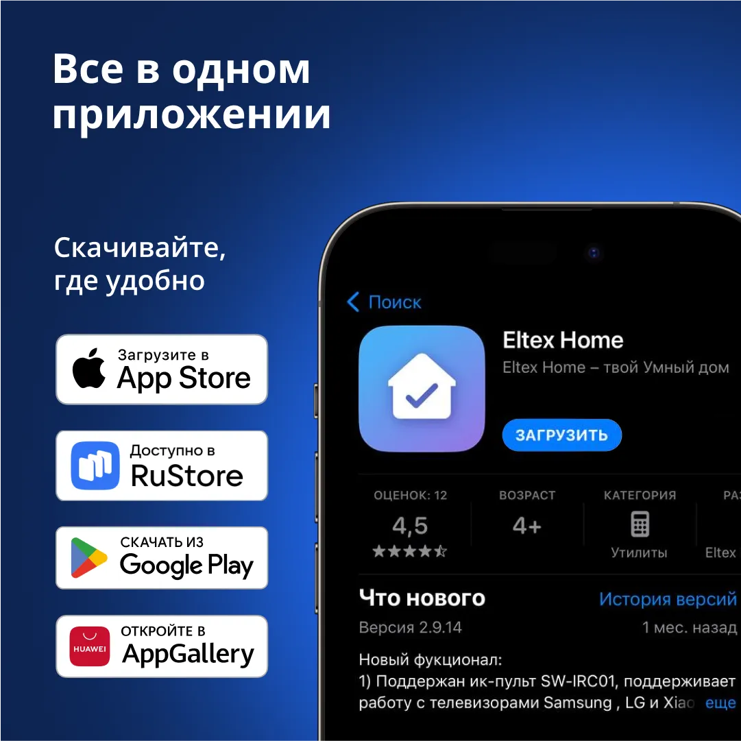 Управляйте в приложении Eltex Home или с помощью популярных голосовых помощников: Алиса, Салют, Маруся.