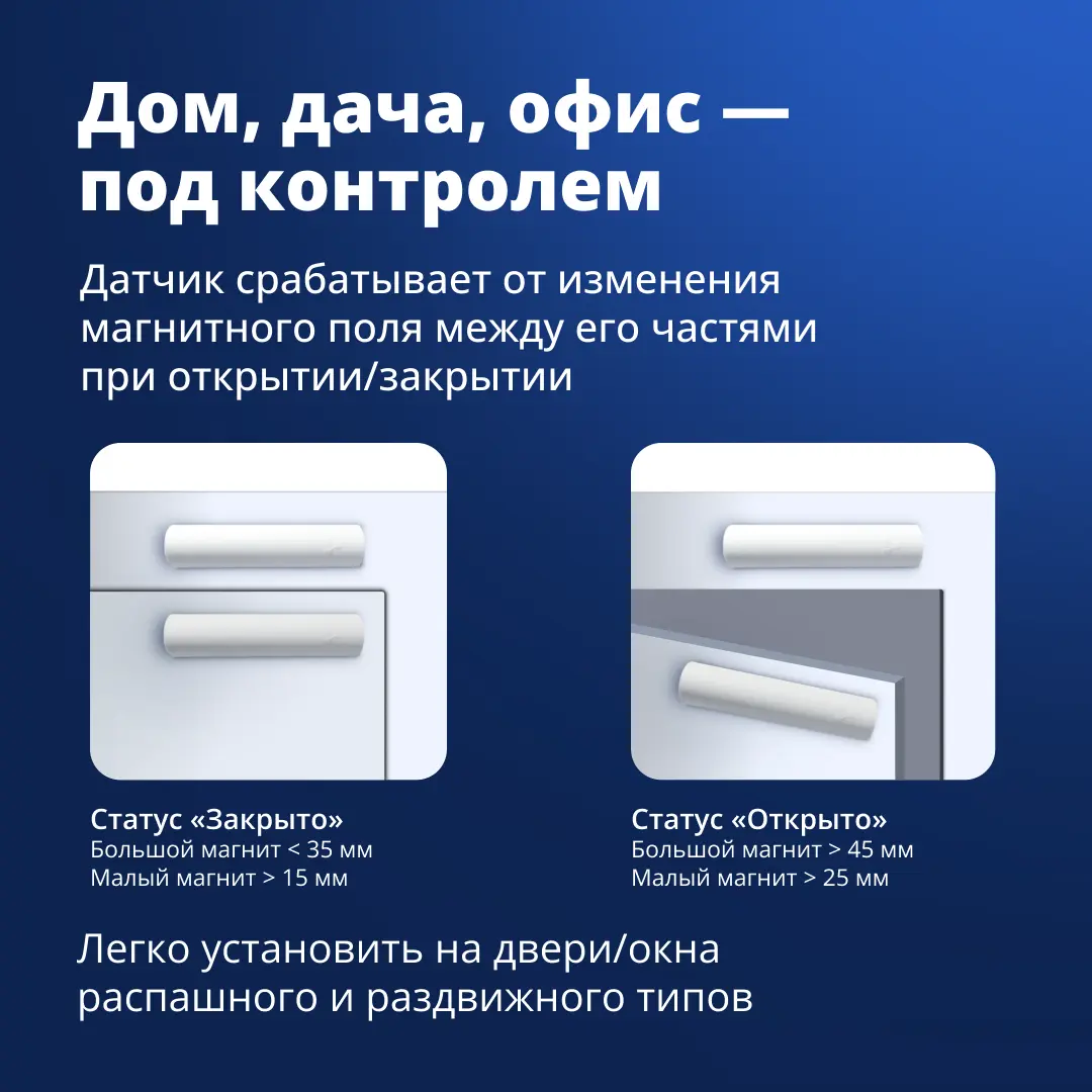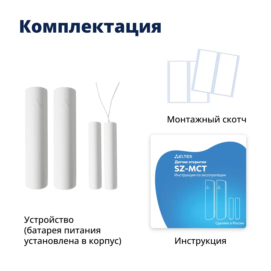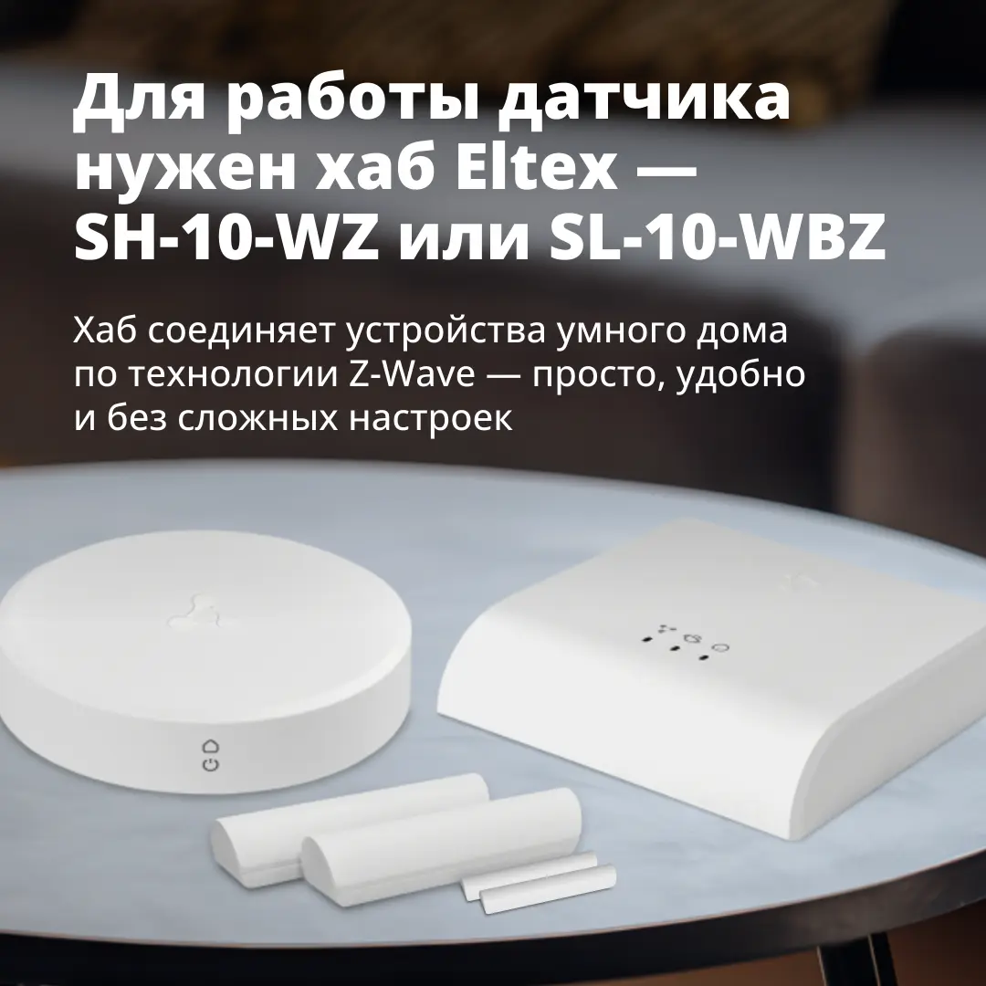 Умный датчик открытия Eltex SZ-MCT помогает контролировать окна и двери и сообщает о любых изменениях через уведомления в приложении Eltex Home. Работает по технологии Z-Wave, для подключения нужен хаб Eltex.