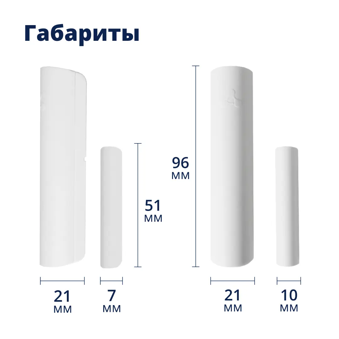 Датчик компактный и беспроводной, устанавливается без прокладки кабелей и работает от батарейки. Для нестандартных мест установки в комплекте предусмотрен выносной датчик с проводом длиной 1,8 метра.