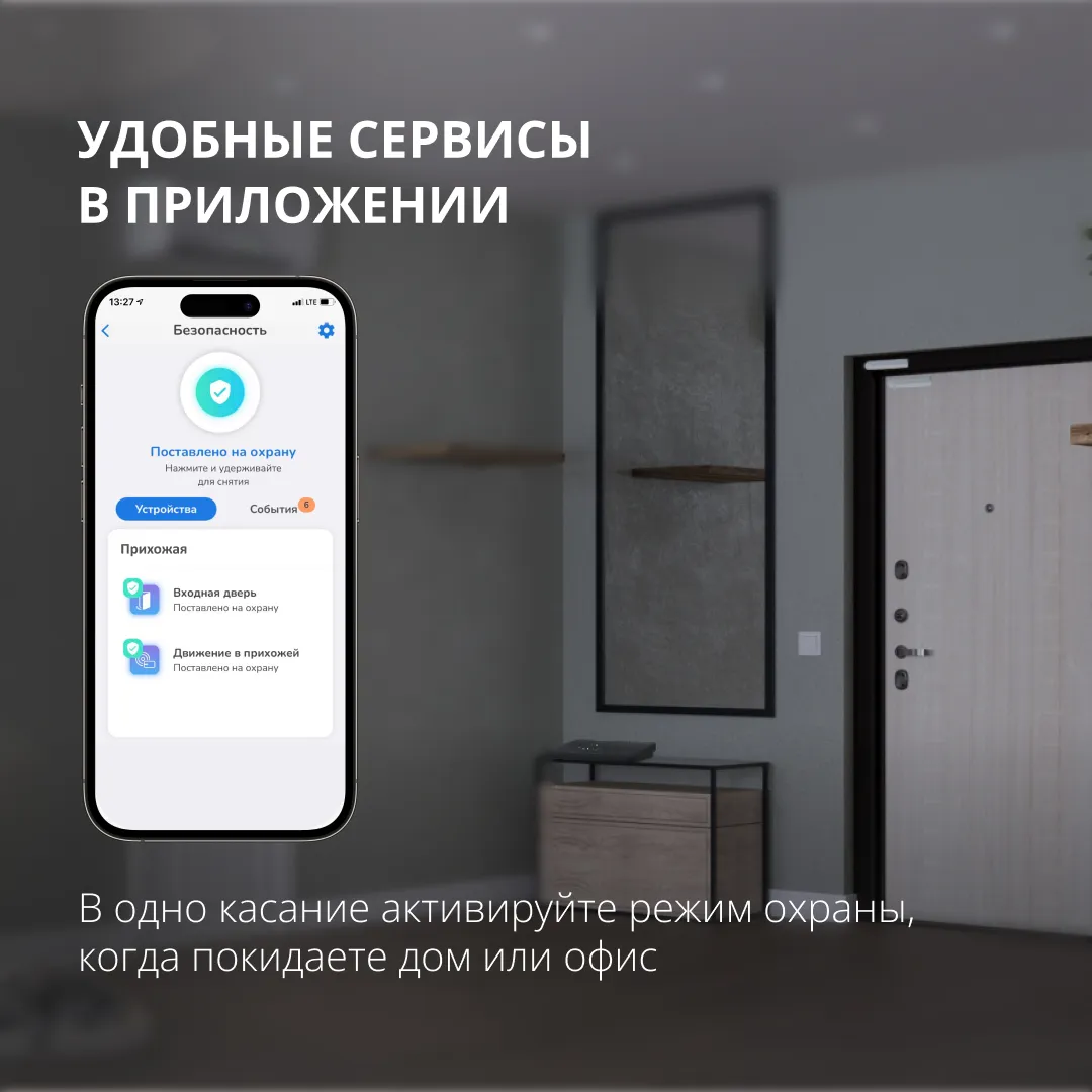 Автоматизируйте повседневные рутинные задачи с помощью приложений Eltex Home, «Дом с Алисой», «Салют» или «Маруся». В SZ-PIR встроен датчик освещенности, который поможет умному дому самому включать и выключать свет в зависимости от времени суток.