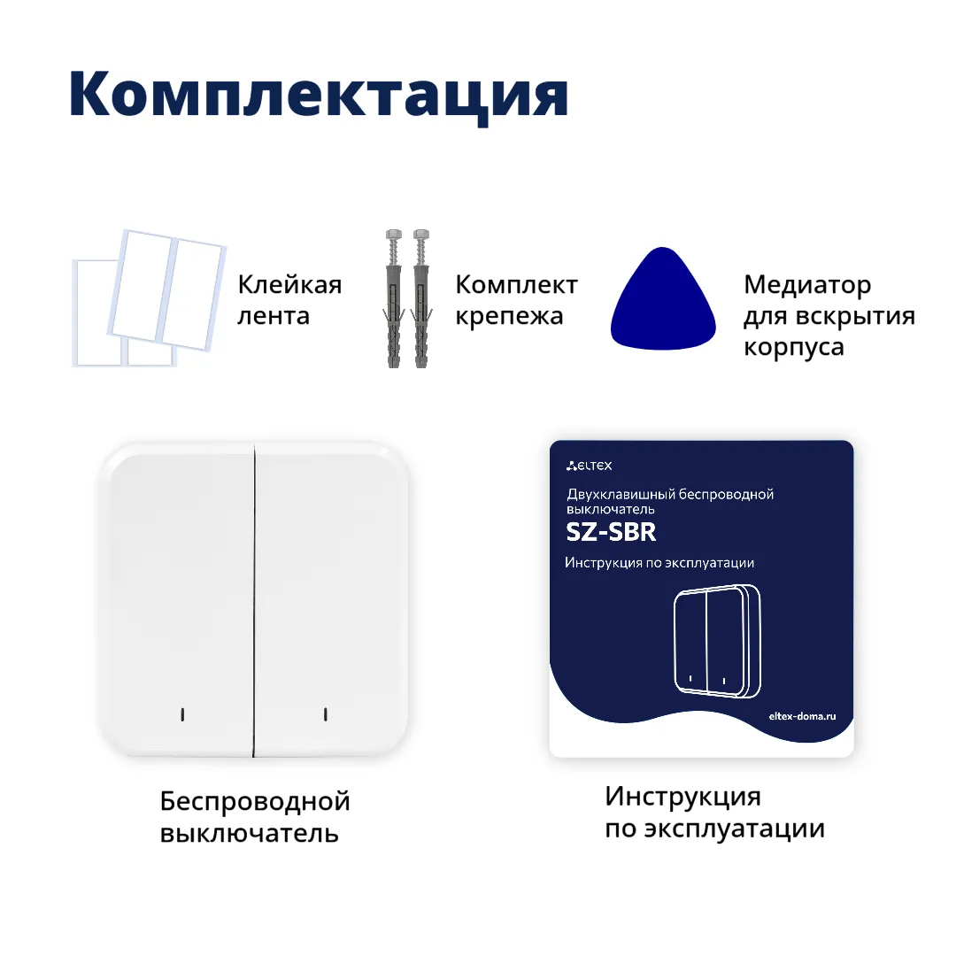 Двухклавишный беспроводной выключатель Eltex SZ-SBR – удобный способ управления освещением и бытовыми приборами в системе умного дома. Теперь управлять устройствами стало ещё проще: минимум движений — максимум возможностей.